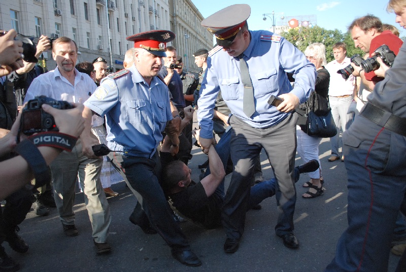 После этого Удальцова схватили пятеро омоновцев и уволокли в автобус. Лев Пономарев также задержан.