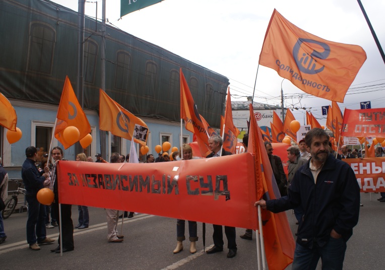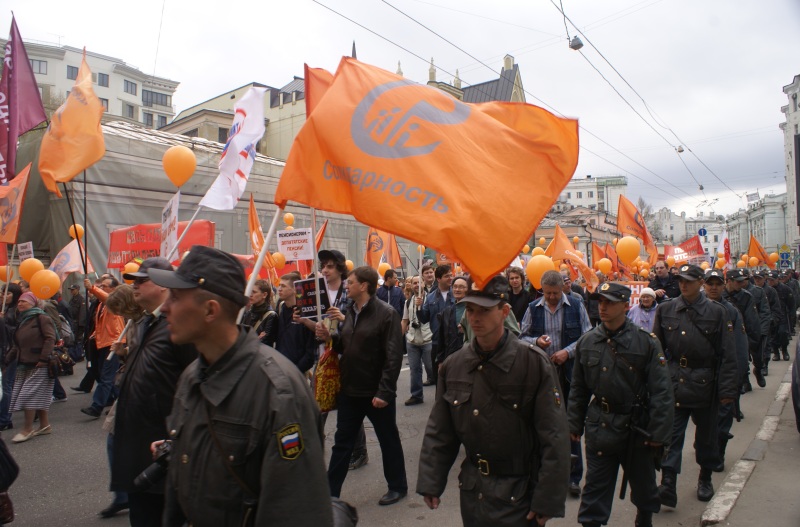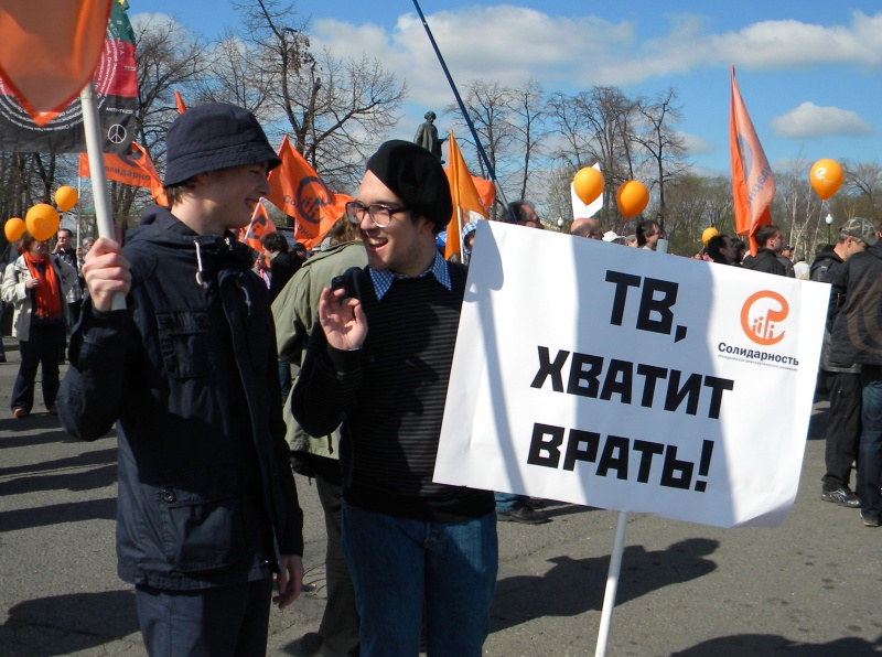 Движение "Солидарность" провело первомайское шествие, которое завершилось фестивалем искусств и политического протеста, сообщает корреспондент Каспаров.Ru с места событий.