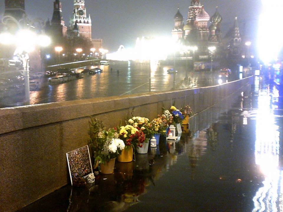 На то место, где начинался мемориал в ту страшную и дождливую ночь 27 февраля 2015 года, когда казалось, что сама природа плачет над тем, что сделали люди.
