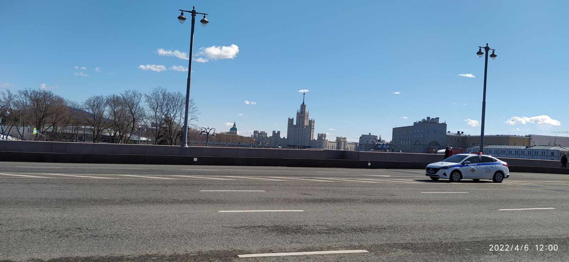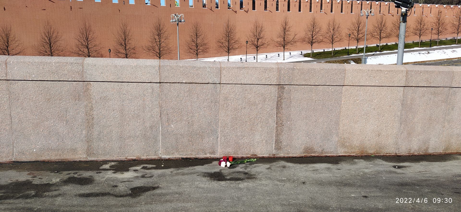 Только я начала всё устанавливать, как стоявшая на середине моста машина ДПС поехала, медленно проехала мимо Мемориала и встала на прежнее место — проверили, нет ли у меня крамолы.