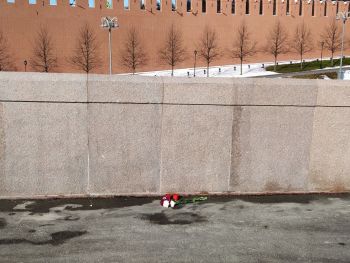 Приходит Миша. Привозит Мемориал. Постепенно разбирает цветы. Я ненадолго ухожу, потом возвращаюсь.