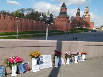 Сначала полицейский говорит, что можно оставить цветы. Мы переносим их за загородку. Но потом требует у нас убрать все: